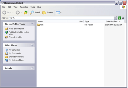 Once you’ve been out and about and have logged some GPS location coordinates with the Sony GPS-CS1KA, attach it to your PC with a USB cable. The GPS will appear as a “Removable Disk”, much like a USB memory stick might. If you double-click the drive letter corresponding to your device, the following is displayed: