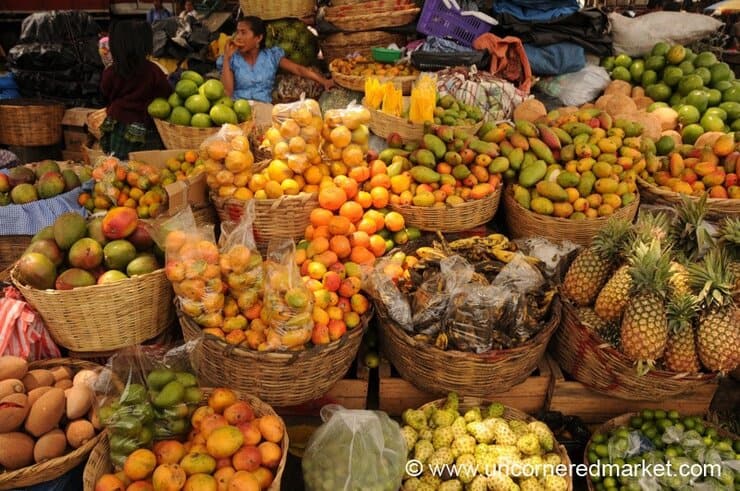 Walk past the front section of the market, past the souvenirs and freshly cut fruit intended for gringos, and just keep going back, back — deep into the market, maybe even into the adjacent back parking lot areas where on weekends vendors come from neighboring villages.