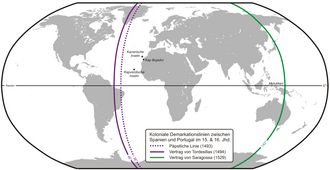 Territorial demarcations between the Portuguese and Spanish empire, resulting from the treaties of Tordesilhas, Saragoça and Alcáçovas (in German)