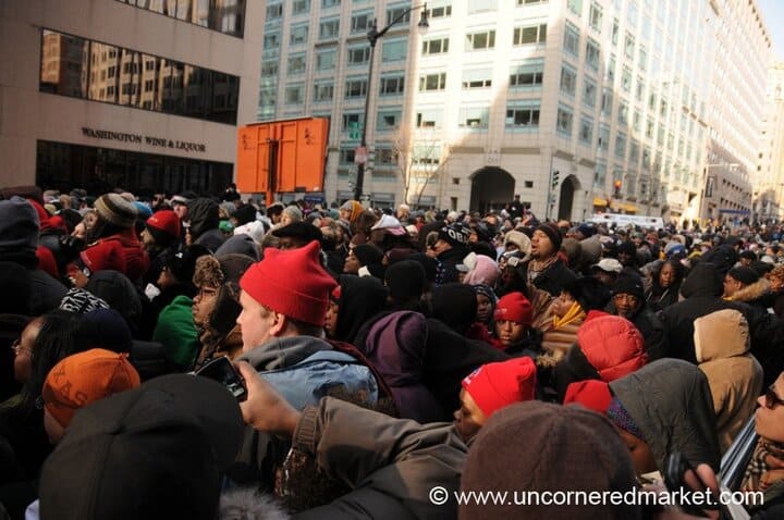 When I arrived at the entry point for my press pass (12th and E Streets) just before 8 AM, absolutely nothing was marked. Some people held tickets, others held press passes, the majority held nothing but hope. Practically speaking, we were all in the same boat.