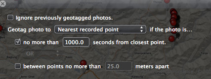 5. Select your desired tolerance for geotagging in terms of seconds or meters. We usually choose between 600 and 1000 seconds to compensate for going in and out of buildings.
