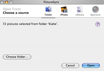 Click “Choose Folder” and select the folder of photos you’d like to import. Then click the “Open” button. Alternatively, you can drag and drop images directly from the Finder into the PictureSync window above.