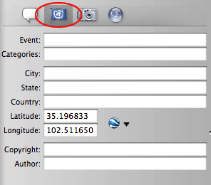 If you click the button that looks remarkably similar to a United Nations Flag, PictureSync will display location data associated with the photo. In the rare case that a photo sneaks through the geotagging process described in Part 2 of this series without being geotagged, there's one last chance to enter location data for the photo before it is uploaded. Find another photo taken from the same location. Copy (Control-C) the latitude and longitude data from the geotagged photo and paste (Control-V) it into the latitude and longitude fields of the untagged photo. Voila, you now have a geotagged photo.