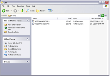 Once you’ve been out and about and have logged some GPS location coordinates with the Sony GPS-CS1KA, attach it to your PC with a USB cable. The GPS will appear as a “Removable Disk”, much like a USB memory stick might. If you double-click the drive letter corresponding to your device, the following is displayed: