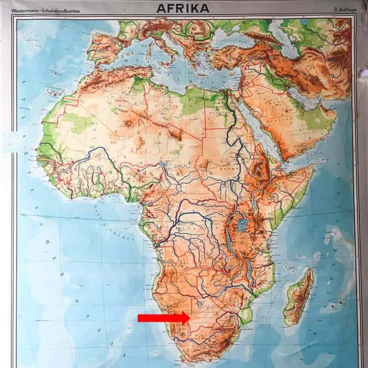 Prior to our visit to Botswana, I pondered a 1959 East German school map of Africa hanging on our living room wall. I traced the red lines of its borders until I landed in a central patch of southern Africa.