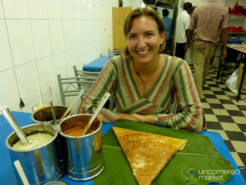 Though Iโ€™m physically in one of Kuala Lumpurโ€™s Indian neighborhoods as I write this, these morning moments take me back to our travels through India, and more specifically southern India.  There, as my taste buds adapted to the flavors and style of South Indian cuisine, the masala dosa emerged as our savory breakfast of champions.