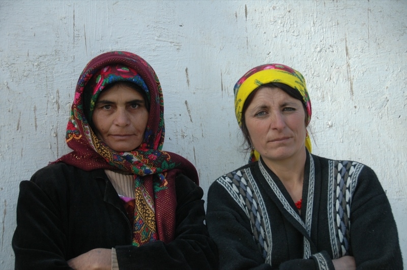 Serious looking Tajik women in the Pamir Mountains, Tajikistan.