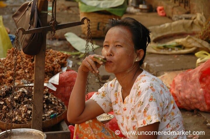 2. @Chip: The yellowish clay stuff on the faces is thanaka. The Burmese call it their “natural makeup” – they get the paste from rubbing a little water against thanaka bark. Then they apply it to the face using different designs. Women and children use it for cosmetic (beautification) purposes and to protect their faces against the sun. We’ve only ever seen this in Burma – it’s unique and really cute on the kids.