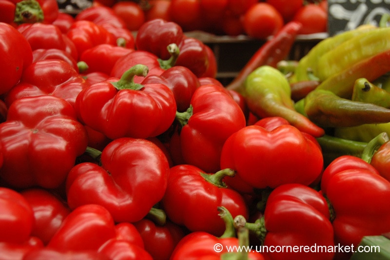 Spicy peppers all around the markets of Budapest.